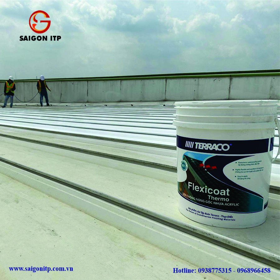Sơn chống nóng Terraco Flexicoat Thermo – một sản phẩm sơn chống nóng cao cấp, được thiết kế chuyên biệt để thi công cho các loại mái như mái bê tông (mới và cũ) và mái kim loại (như tôn, kẽm, thép mạ…) – chính là lựa chọn lý tưởng.
